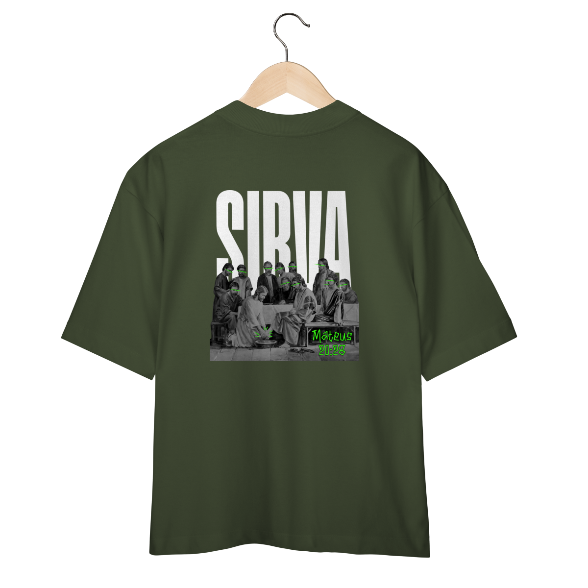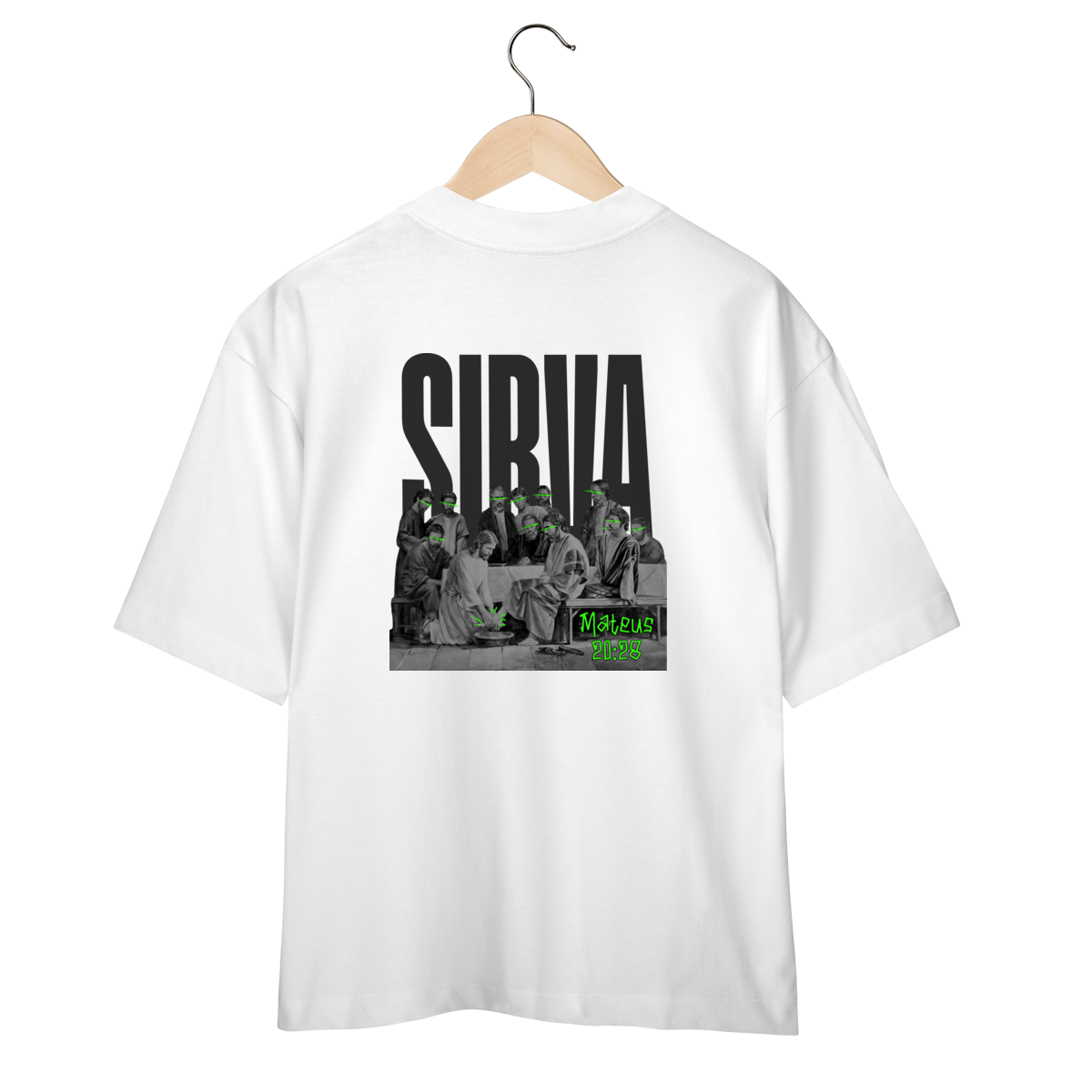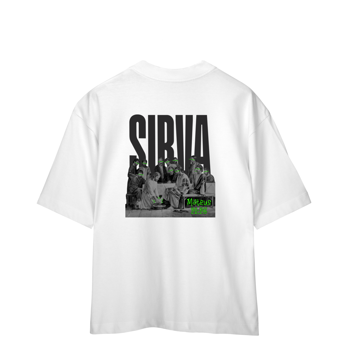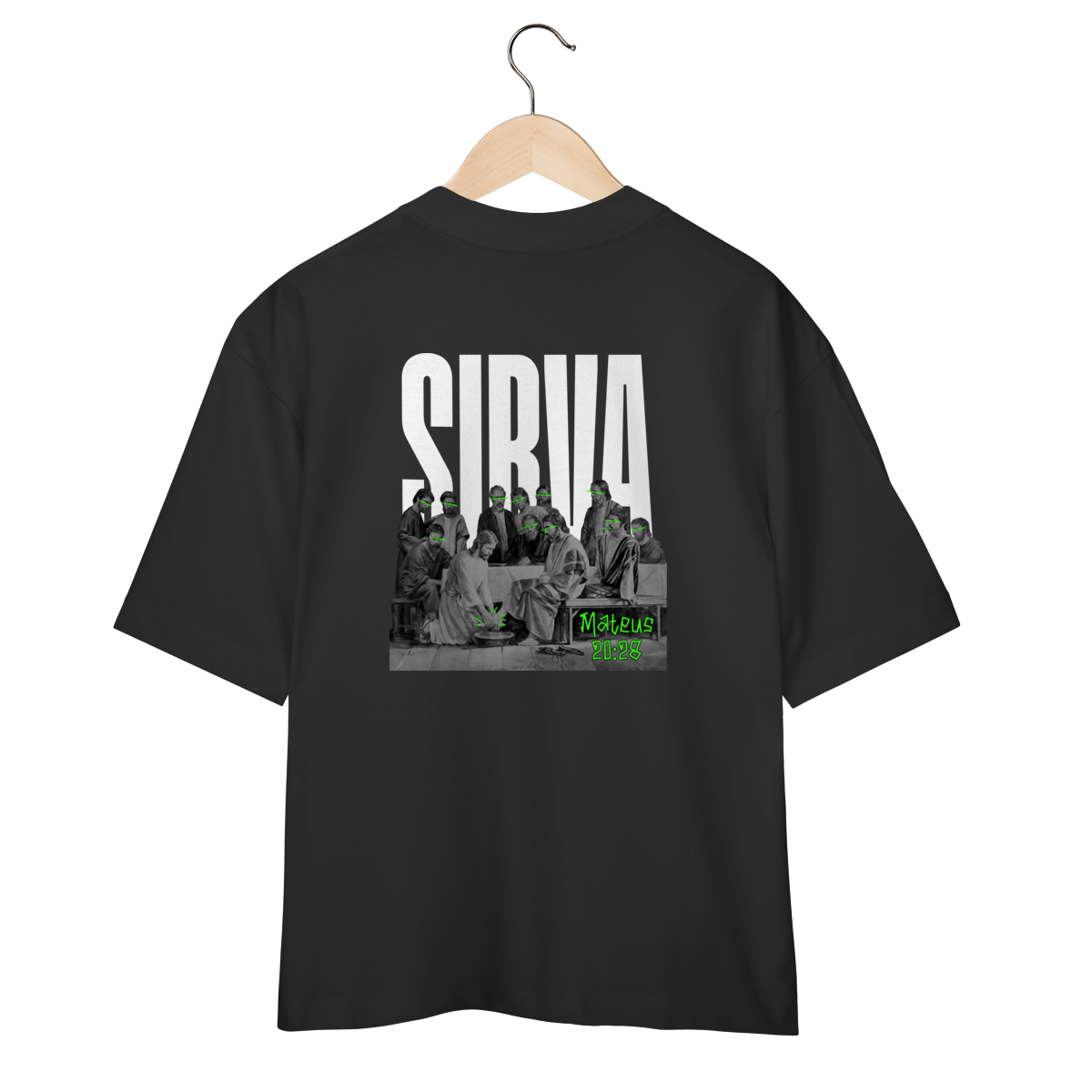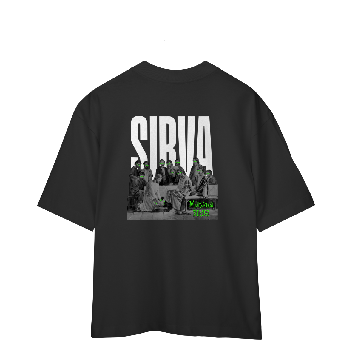 Inspirada na passagem de Mateus 20:28, esta camiseta RUÍDO SANTO carrega uma mensagem poderosa: o verdadeiro líder é aquele que serve. A arte nas costas retrata o momento em que Jesus lava os pés dos discípulos — com destaque em neon para rostos e pés, simbolizando humildade iluminada.